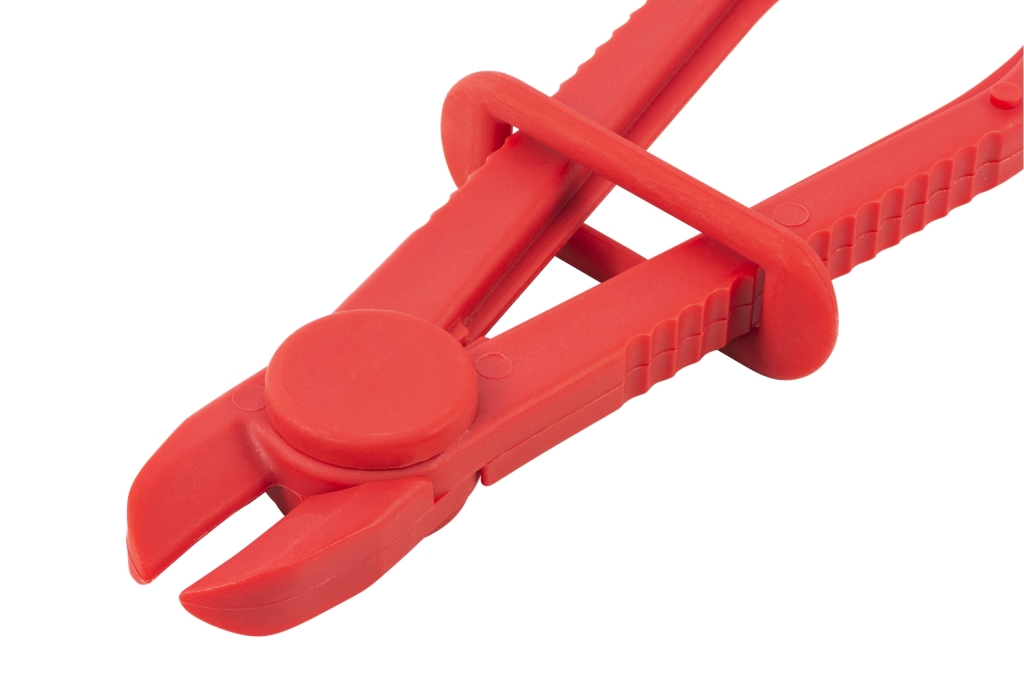 Pinch-off tools for flexible hoses (e.g. fuel, cooling, water) closing during repair. Made from nylon material which prevents hoses cutting.