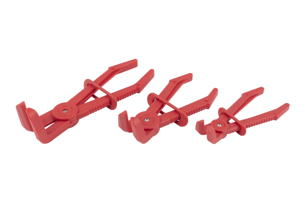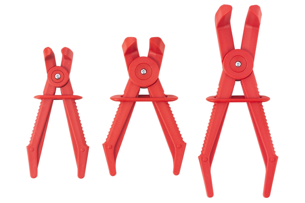 Zaciski przeznaczone są do zabezpieczenia elastycznych przewodów (np. paliwowych, chłodniczych, wodnych) podczas prac serwisowych.