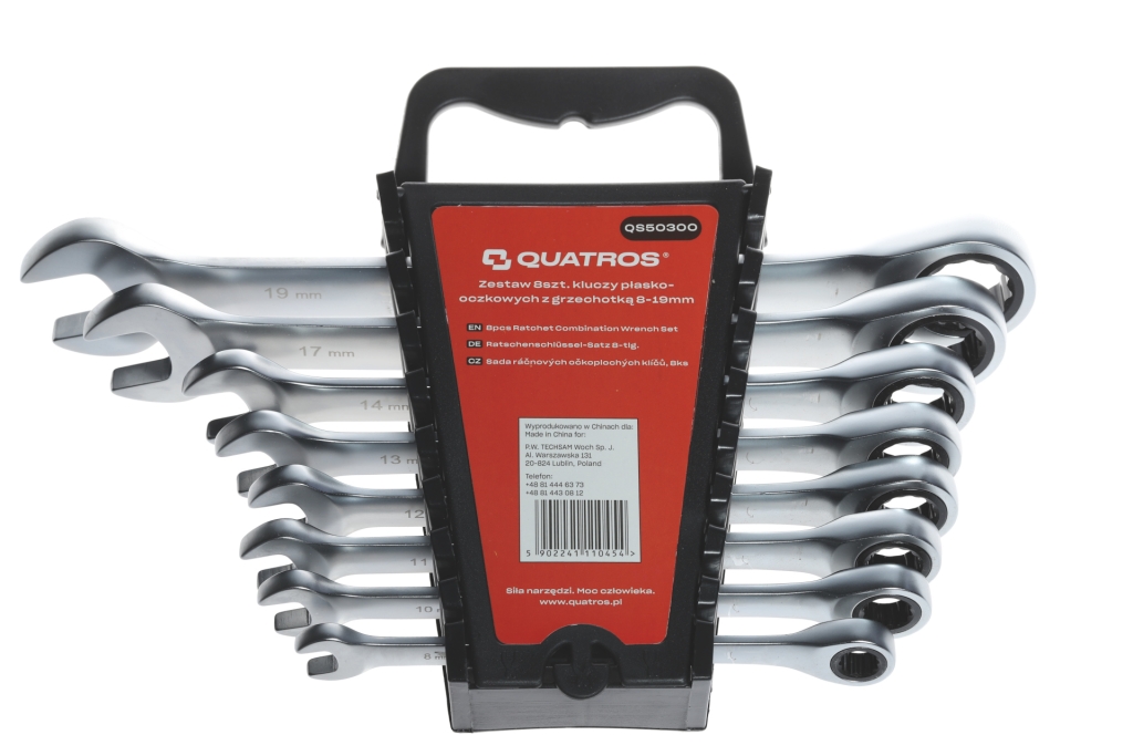 8szt. kluczy płasko-oczkowych z grzechotką 72zęby: 8, 10, 11, 12, 13, 14, 17, 19mm