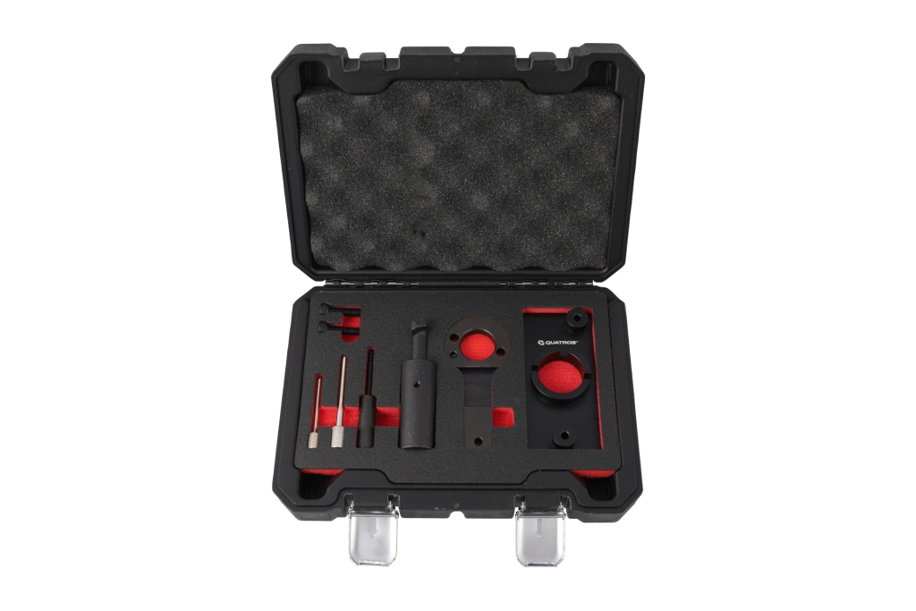 Zestaw blokad rozrządu umożliwiający wymianę osprzętu oraz paska rozrządu. Zestaw nie zawiera blokady wałków niezbędnej do wymiany łańcucha.