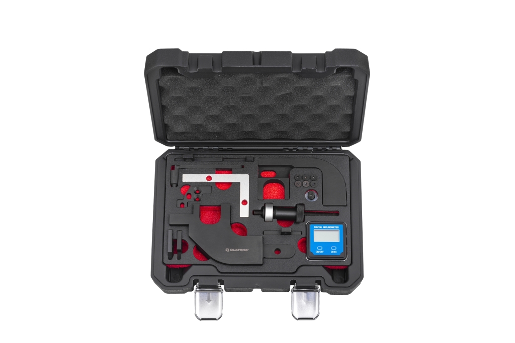 Kompletny zestaw do obsługi rozrządu, umożliwiający wymianę i sprawdzenie rozrządu w silnikach 1.4 i 1.6 PSA/BMW. Obsługiwane kody silników to BMW i MINI: N12, N13, N14, N16 i N18 oraz Citroën/Peugeot: EP3 i EP6. Zestaw zawiera cyfrowy kątomierz (inklinometr) zalecany przez PSA do kontroli zużycia łańcucha oraz poprawnego ustawienia wałka ssącego zmiennych faz rozrządu.